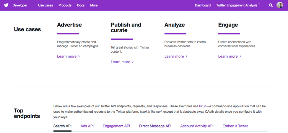 Twitter üzerinden API hizmeti için uygulama oluşturma eskiye göre daha meşakkatli. Normalde apps.twitter.com adresinden uygulamalar oluşturarak tweet verilerini çekebiliyorduk ama Ağustos 2018 itibariyle API’a erişmek için geliştirici hesabına başvurmak zorunlu hâle geldi. Başvuru sonrasında hesabın aktive edilmesi için bir süre beklemek zorunda kalabilirsiniz.