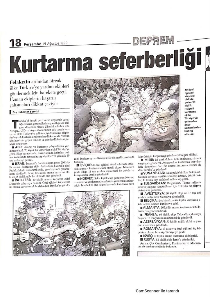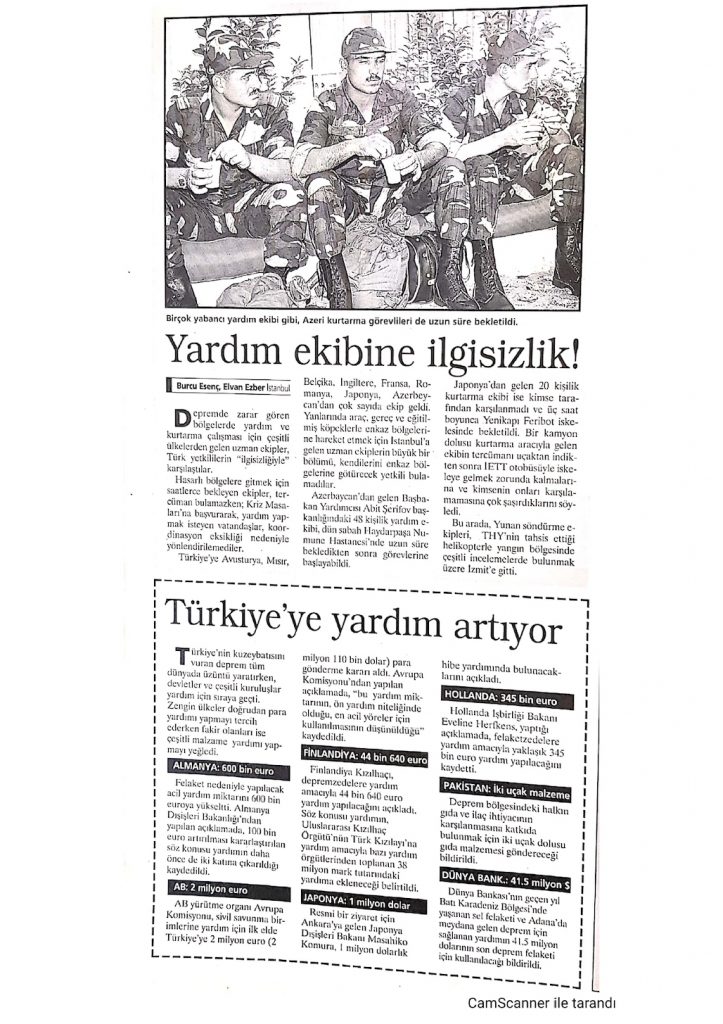 Seferberlik, Milliyet’in de dilindeydi: “Kurtarma seferberliği” başlığı altında, dünyanın dört bir yanından gelen gönüllülerin çabaları ülke ülke anlatılıyor, hangi ülkenin ne kadar personel ve yardım malzemesi gönderdiği detaylı biçimde aktarılıyor, Avusturya, Mısır, Belçika, İngiltere, Fransa, Romanya, Japonya ve Azerbaycan’dan gelen tam teçhizat yabancı yardım ekiplerinin kendilerini enkaz bölgesine götürecek yetkililer tarafından saatlerce bekletilmesi “Yardım ekibine ilgisizlik!” başlığıyla eleştiriliyordu.