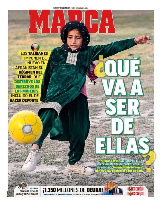 İspanyolların en ünlü spor gazetesi Marca’nın kapağını gördünüz mü? Fotoğrafta bir Afgan kız futbol oynuyor. Aynısı acaba Türkiye’de olabilir miydi? Lig başlamış, transfer sezonu sürerken futbolseverler takımlarına gelecek yeni yüzlerin peşine düşmüşken, bir spor gazetesinin bunu yapması mümkün olur muydu?