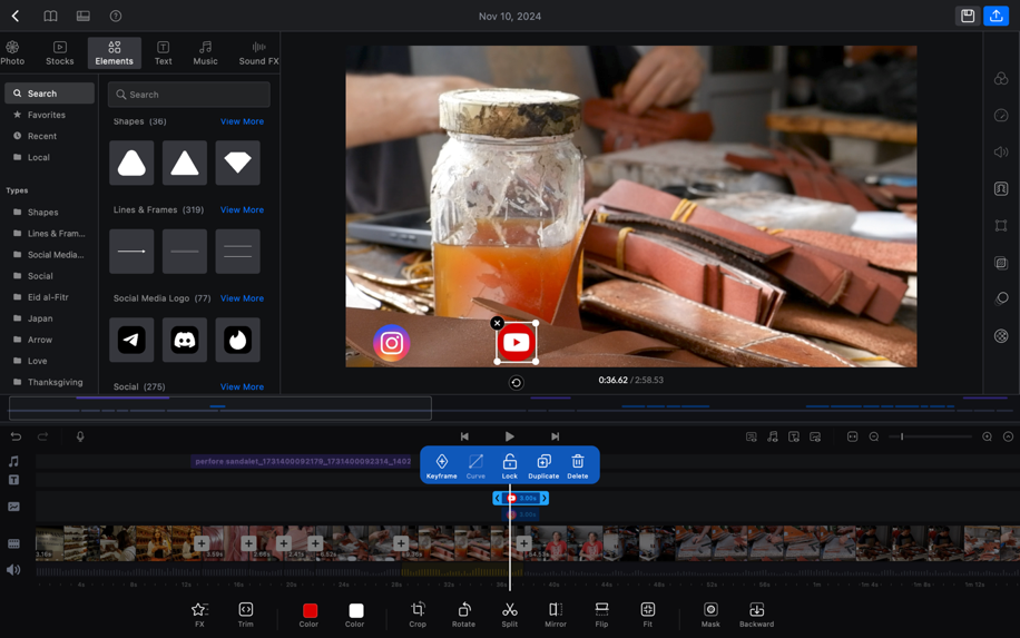 Sadece metin eklemenin yetmediği durumlarda, “Elements” içerisinde bulunan sosyal medya logolarından hava olaylarına kadar çeşitli sembollerle videonuzu renklendirebilirsiniz.
