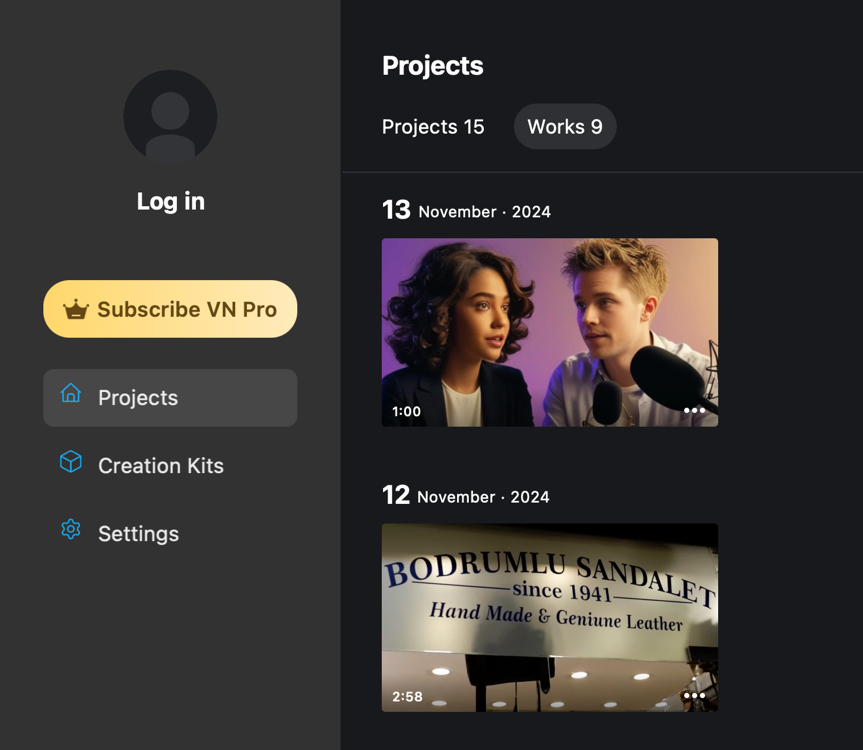 Çıktısını aldığınız projelere “Works” bölümünden ulaşabiliyorsunuz. Sonrasında istediğiniz şekilde videonuzu paylaşabilirsiniz.