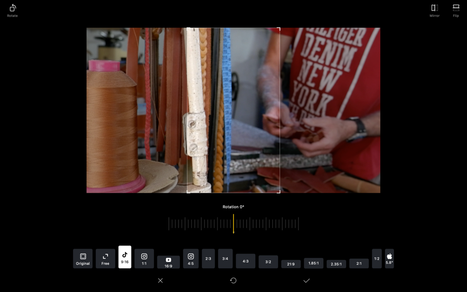Hazırladığınız videoyu eğer, örneğin, TikTok ve YouTube için ayrı boyutlarda oluşturmak istiyorsanız bu boyutlandırmayı “original” bölümünden yapabileceğiniz gibi “crop” seçeneğinden de üstteki görselde görüldüğü gibi ayarlayabilirsiniz. Ayrıca “rotation” ile görüntülerin eğimini de ayarlayabiliyorsunuz.